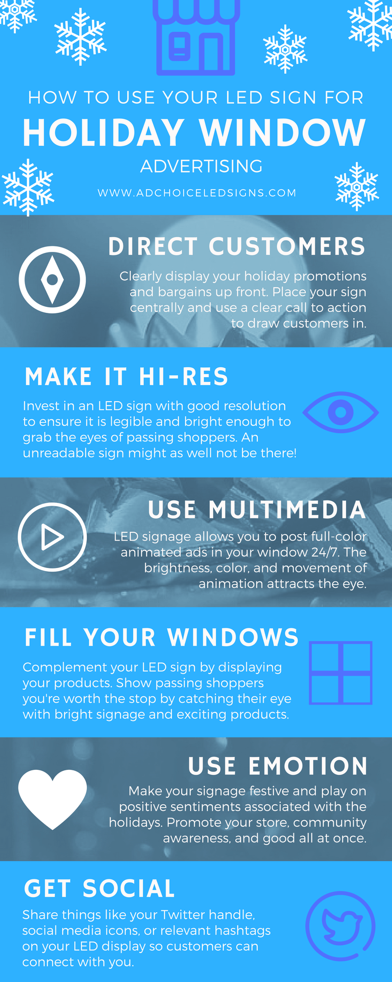 led signs, adchoice led signs, holiday window displays, store window displays, window display ideas, indoor led signs
